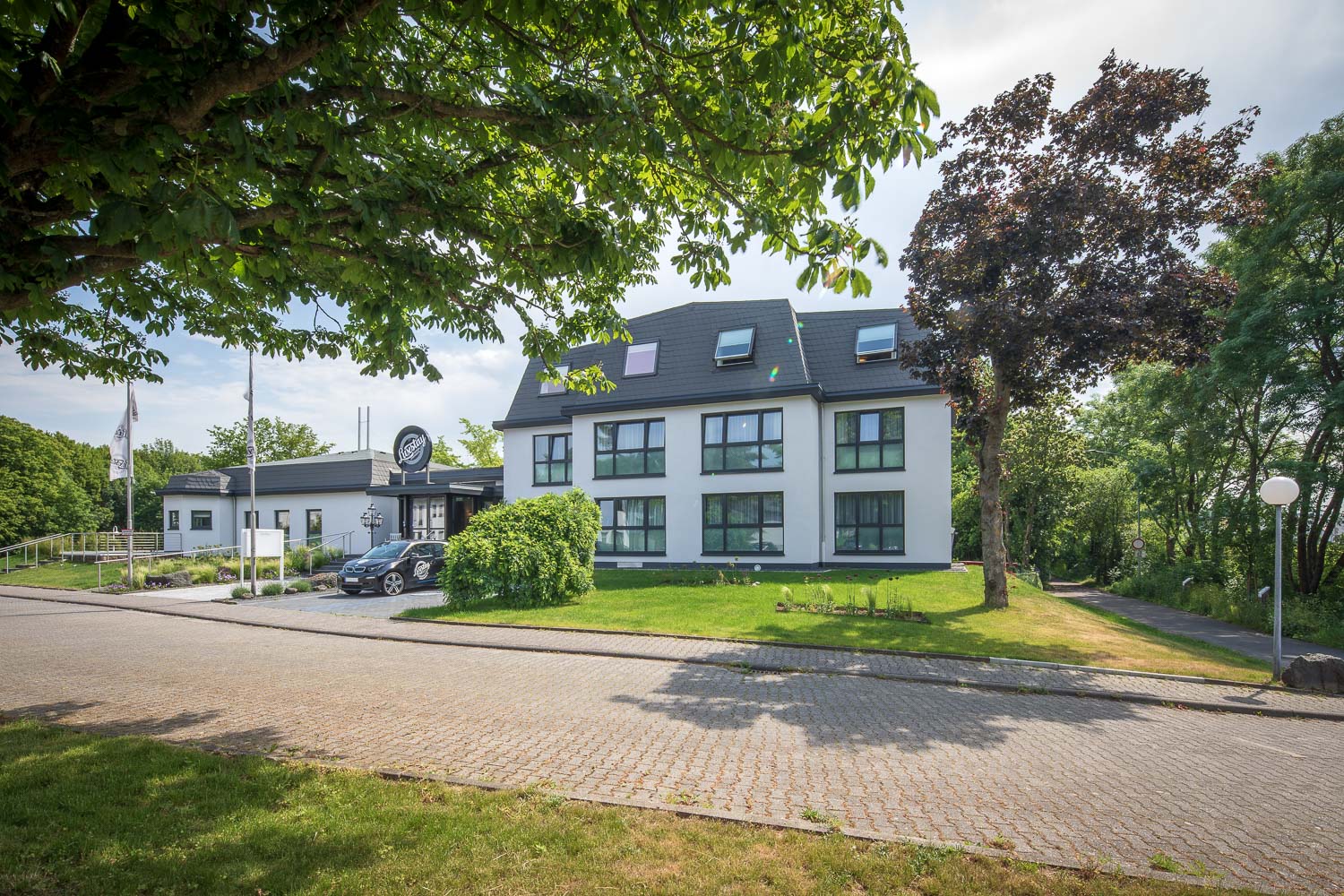Auch an der Hotelfassade, den Fenstern und der Außenanlage wurde Hand angelegt. Die schallisolierten Zimmer mit Parkettboden wirken nun hell und einladend. „Wir wollen unseren Gästen ein Zuhause weg von Zuhause bieten“, betont Kay-Hendrik Eichler, der das 1,3 ha große Areal in Karben samt Hotel, dem angrenzenden Tennisplatz und der Tennishalle 2013 erwarb. Etwa eine Million Euro hat das Ehepaar seitdem in die Sanierung und den Umbau des Hotels investiert.