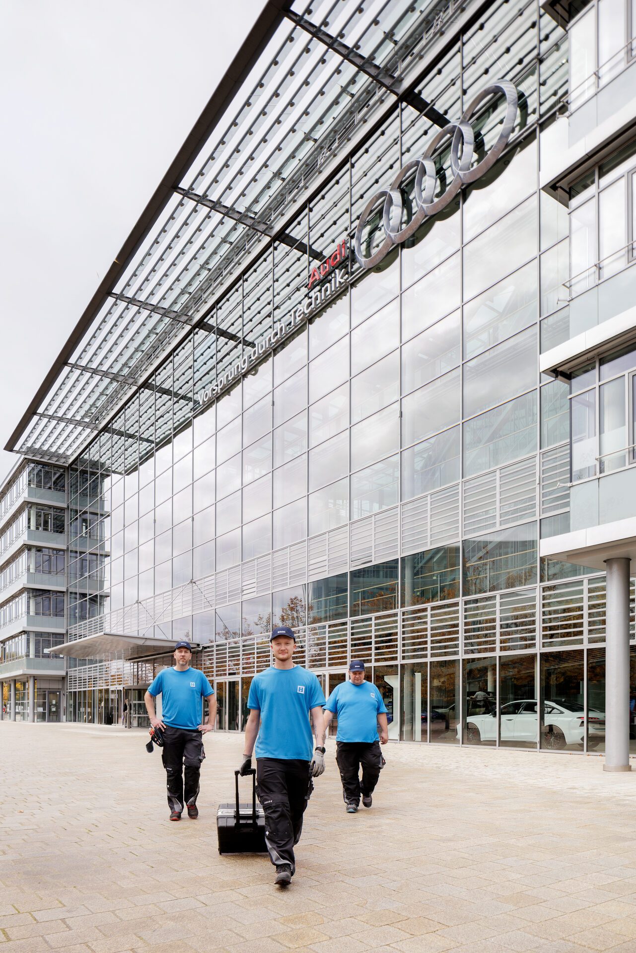 Von Anfang an setzte Haushahn auf ein eigenes Audi-Technikerteam unter der Leitung von Kundendienstmeisterin Rima Seidel. Paul Stein, René Hinz, Marius Hauke und Philipp Dechant betreuen die verschiedensten Aufzugsvarianten bei Audi mit höchster Sorgfalt und Zuverlässigkeit. In verschiedenen Modernisierungs- und Neubau-Projekten bewies Haushahn zudem bereits reibungsloses internes Teamwork und besondere Kompetenz – etwa 2019 bei der Errichtung diverser neuer Aufzüge und auch der Installation eines Zwölf-Tonnen Lastenaufzugs, einem Herzstück der Fertigung. Eine solch produktionskritische Anlage, die auf die anspruchsvollen Kundenbedürfnisse konzipiert wurde, verfügt über redundante Sicherungssysteme und ist sehr komplex aufgebaut.